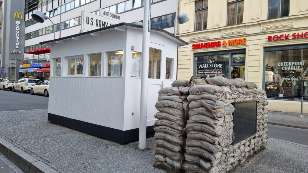 Créé en 1961, Checkpoint Charlie est rapidement devenu un symbole mondial de la division de l’Allemagne et des tensions entre les blocs de l’Est et de l’Ouest. De nombreuses tentatives d’évasion, parfois tragiques, ont eu lieu à proximité, renforçant la charge émotionnelle du site. Aujourd’hui, la guérite que l’on voit est une reconstitution, mais le lieu conserve une forte valeur historique.