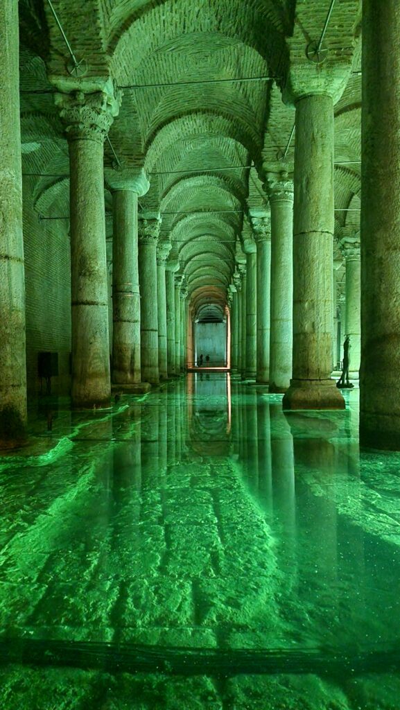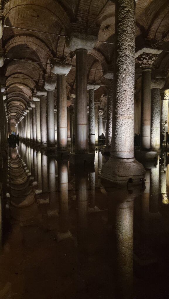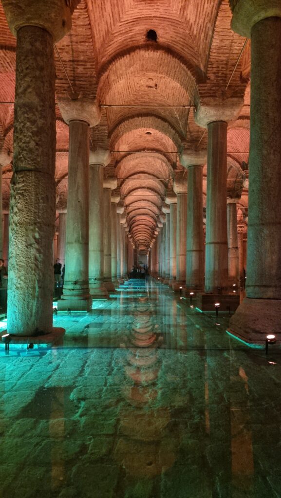 Aujourd’hui, la Citerne Basilique d’Istanbul est mise en valeur par des jeux de lumière subtils et des passerelles en bois permettant de circuler au-dessus de l’eau. La visite offre une parenthèse fraîche et silencieuse, idéale pour échapper à l’agitation extérieure. À la fois fascinante et poétique, la Citerne Basilique constitue l’une des expériences les plus marquantes de mon séjour à Istanbul, mêlant histoire, mystère et émotion.
