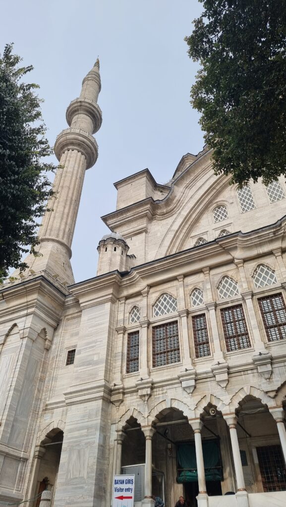 À l’intérieur, l’ambiance est paisible malgré l’effervescence extérieure. Les coupoles élégantes, les faïences aux tons bleus et dorés et la lumière naturelle filtrant par les fenêtres créent un espace sobre et harmonieux. On y ressent immédiatement une atmosphère calme, propice à la pause et à l’observation. Ce que j’ai particulièrement apprécié à la Mosquée Neuve, c’est son emplacement. Après la foule du marché aux épices ou l’animation du port, entrer dans la mosquée permet de ralentir et de prendre du recul. Elle fait partie de ces lieux qui s’intègrent naturellement, sans détour ni effort, simplement parce qu’on passe devant.