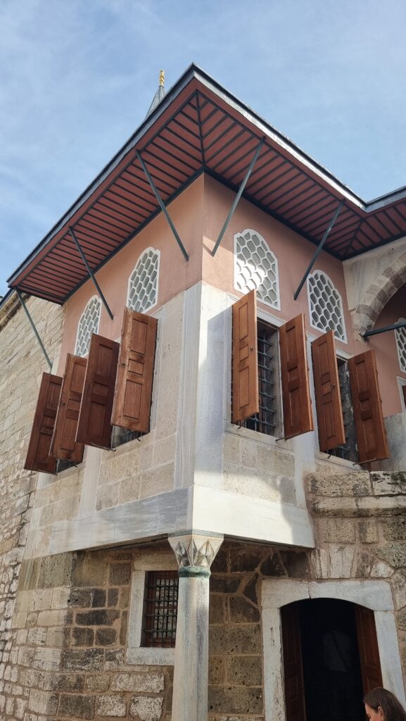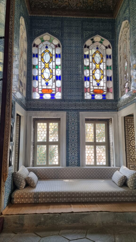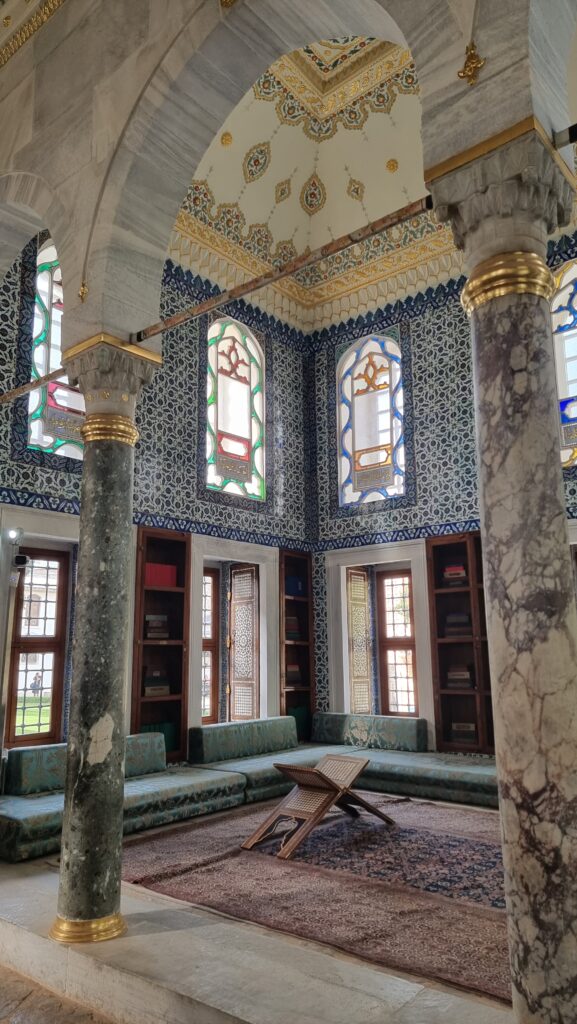 Cette tradition est particulièrement visible dans la Salle du Conseil impérial (Divan). Le sultan pouvait écouter les discussions derrière une grille dissimulée, sans être vu, afin d’observer librement les échanges et juger de la loyauté de ses vizirs. Cette anecdote montre que le palais de Topkapı n’était pas seulement un lieu de luxe et de raffinement, mais aussi un espace de contrôle, de stratégie et de pouvoir absolu.